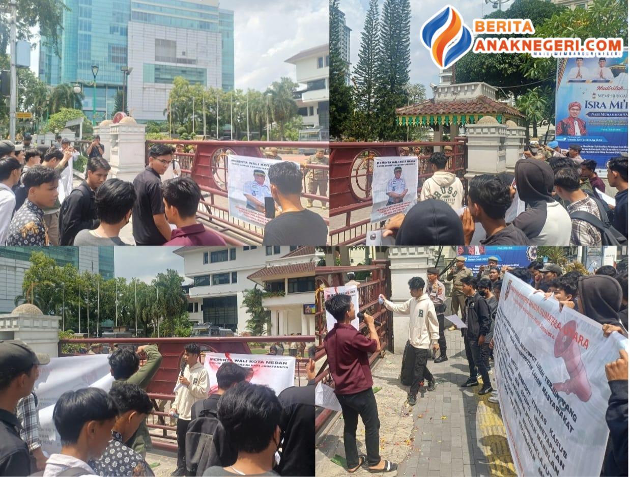 Medan– Ikatan Mahasiswa Muda (IM-MUDA) Sumatera Utara menggelar aksi unjuk rasa di depan Kantor Wali Kota Medan, Kamis (12/2/2026).